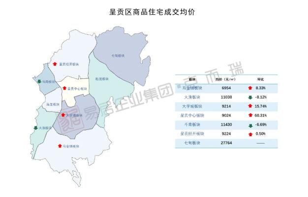 西翥、馬金鋪、小哨等9個板塊商品住宅成交均價不到1萬元/平方米。其中,西翥板塊成交均價最低,為4813元/平方米。