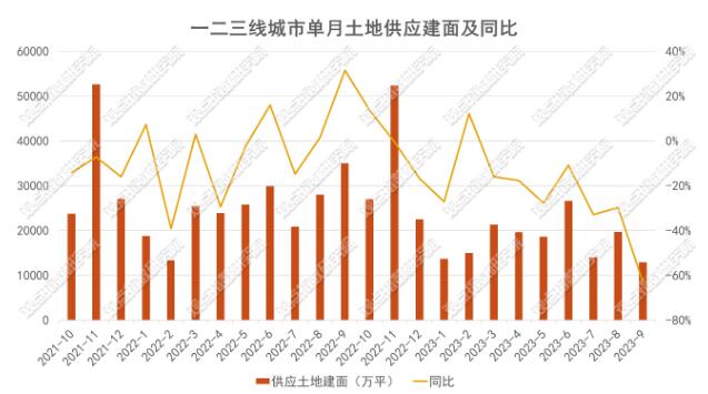 供應處于低位,年末或有回升 期內一二三線城市供應住宅用地636宗,供應土地規劃建筑面積4037萬平方米,供應土地起始樓面價6628元/平方米。9月土地供應繼續下滑,單月供地體量處于全年的較低水平,同比降幅為今年最大。