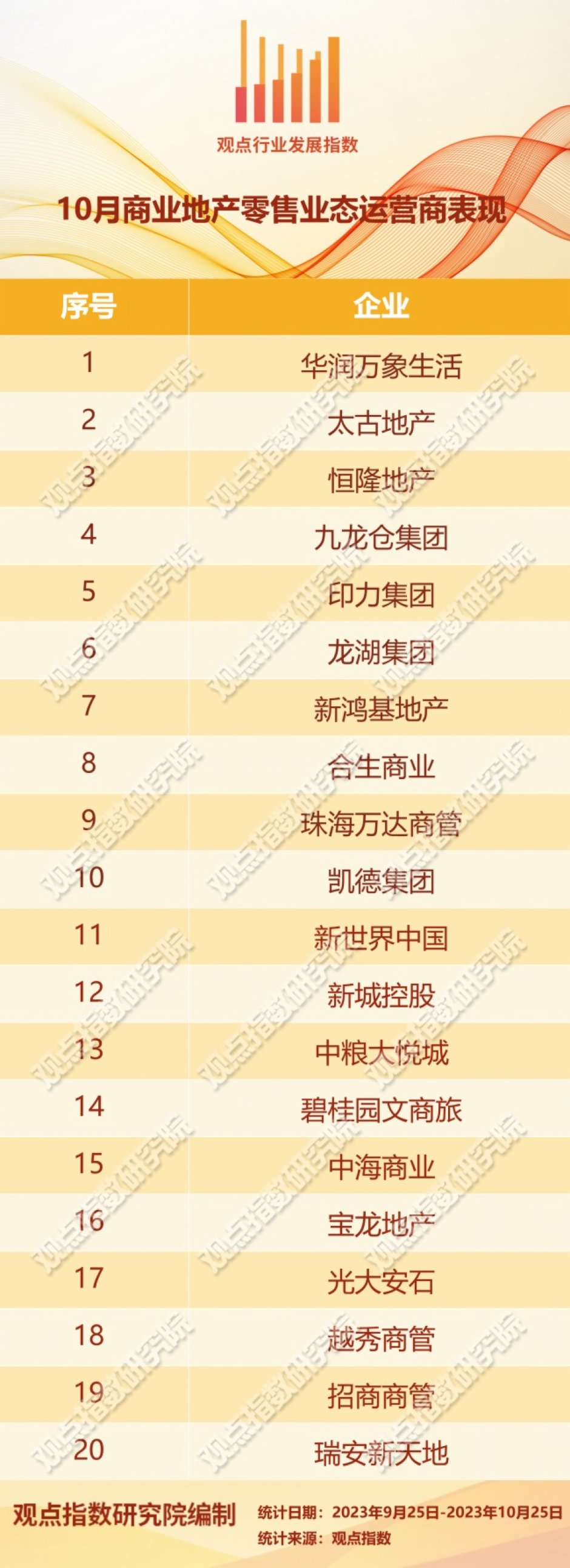 據觀點指數不完全統計,期內樣本企業共有32個項目開業,為市場新供應了超340萬平方米的商業體量。