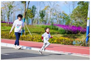 孩子們在“最美綠道”上奔跑 ■ 都市時報全媒體記者 毛亞南