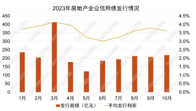 信用債發行方面,報告期內共錄得39起房地產行業債券發行的相關事宜,規模共計218.59億元,同比有所回升,上升幅度為4.82%。其中,10月的發行規模僅次于3月的發行規模,達到年內另一個發債小高峰。