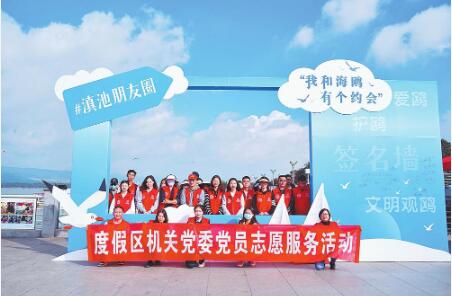 又訊(記者 黨曉培 見習記者 李燕) 11月7日上午,來自滇池度假區管委會機關和轄區各級文明單位的120名黨員志愿者在滇池畔舉行度假區2023年學習宣傳《昆明市文明觀賞紅嘴鷗的規定》暨愛鷗、護鷗、文明觀鷗黨員志愿服務活動。