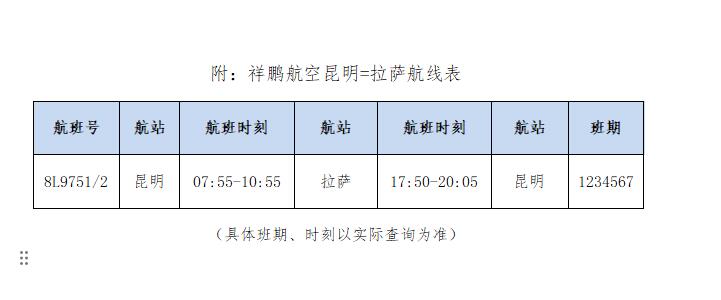 據悉,旅客可任意選擇海航航空集團旗下各航空公司“海天無限”產品,滿足昆明中轉時間為6小時(含)至24小時(含),且其中一段為祥鵬航空承運的“昆明-拉薩”或“拉薩-昆明”航線的旅客,可享受祥鵬航空提供的一晚昆明免費中轉住宿服務(酒店客房數量有限,先到先得),以上適用航班日期為即日起至2023年12月31日(含)。