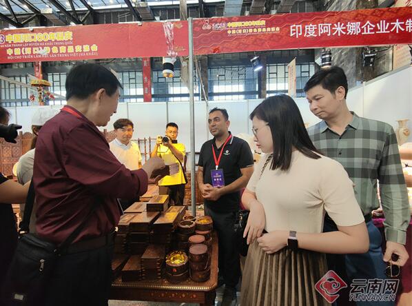參加交流會的印度阿米娜企業是一家木制家具商,現場展示的帶有貝母鑲嵌的桌椅十分精致。印度展商阿里說:“我們從越南進口紅木,在印度生產加工完帶到中國市場進行銷售。”河口不僅是云南對外開放的重要窗口,也為各國企業提供了市場與合作機遇。