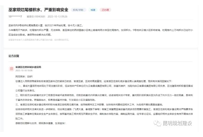 官渡區住房和城鄉建設局回復表示: