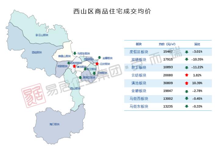 10月,云紡板塊、滇池板塊、翠湖板塊、北辰板塊、東南板塊、七甸板塊商品住宅成交均價都在20000元/平方米以上。其中,滇池板塊成交均價蟬聯最高,為30809元/平方米。