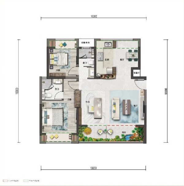 建面約89平方米的戶型,為三房兩廳兩衛設計。該戶型是義承金川府項目在售的最小洋房戶型,功能齊備,布局合理;餐客廳一體,并外接景觀陽臺,有效提升室內通透感和開闊感;值得一提的是,三個房間均帶有飄窗,擴充了更多使用空間。