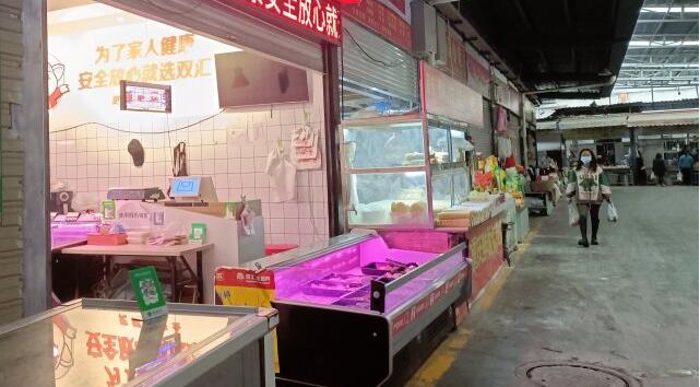 但記者也發現,少數菜市場的生鮮區仍在使用“生鮮燈”。在紫藝新型農貿市場內,一家鮮肉銷售的檔口仍在使用“生鮮燈”。“你知道這種燈光12月1日起就禁用了嗎?”記者詢問檔口經營者時,對方表示“知道”。