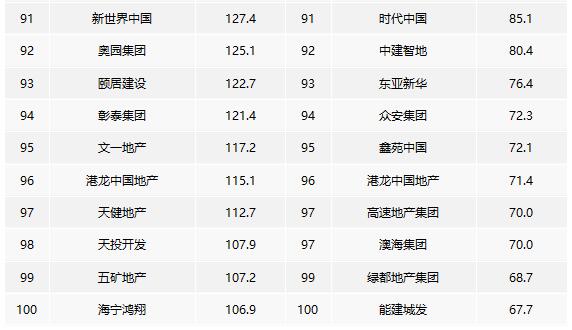 1、業績:TOP100房企銷售總額為57379.0億元,同比下降14.7%