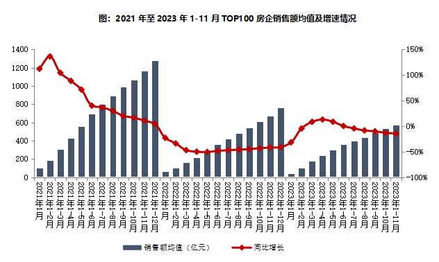 2023年1-11月中國房地產企業權益銷售業績TOP100