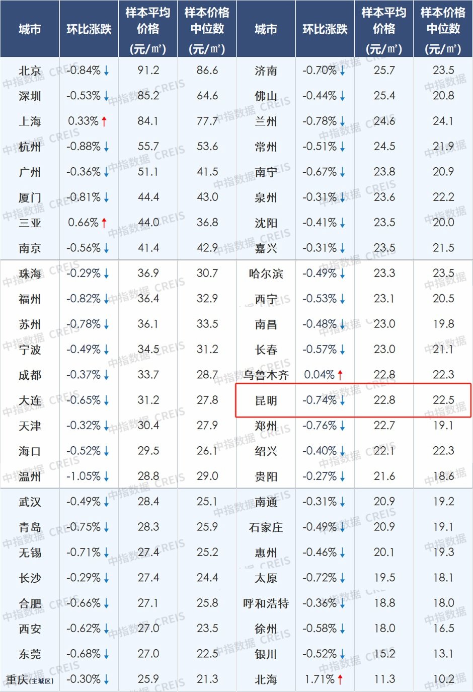近日,中指研究院發(fā)布根據(jù)中國房地產(chǎn)指數(shù)系統(tǒng)百城價(jià)格指數(shù)對全國100個(gè)城市二手住宅銷售市場及50個(gè)城市租賃市場的調(diào)查數(shù)據(jù)。據(jù)統(tǒng)計(jì),11月,百城二手住宅平均價(jià)格為15400元/平方米,環(huán)比下跌0.56%,跌幅較10月擴(kuò)大0.11個(gè)百分點(diǎn),已連續(xù)19個(gè)月環(huán)比下跌。昆明二手住宅平均價(jià)格為13123元/平方米,環(huán)比下跌0.64%。