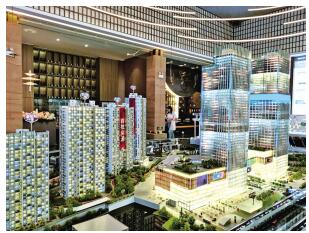 樞紐曜城售樓部?jī)?nèi)的沙盤