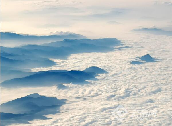 冬日里的景東無量山、哀牢山以及兩山之間的川河壩,清晨的云海美不勝收。淡藍色的天空下,云海呈現出濃濃的白色,隨著光線的穿透,遠處的山巒和云海相映成趣,形成一幅如詩如畫的美景。翻滾的云海時而形成高山、時而形成雄獅、駿馬,從空中俯瞰,云海已是一幅流動的畫卷,隨著微風的吹拂,變幻著形態和光影。
