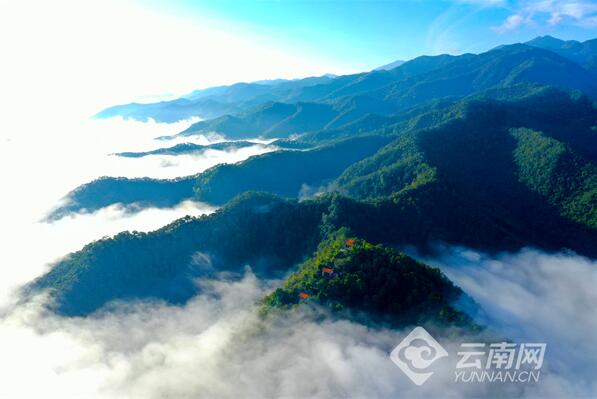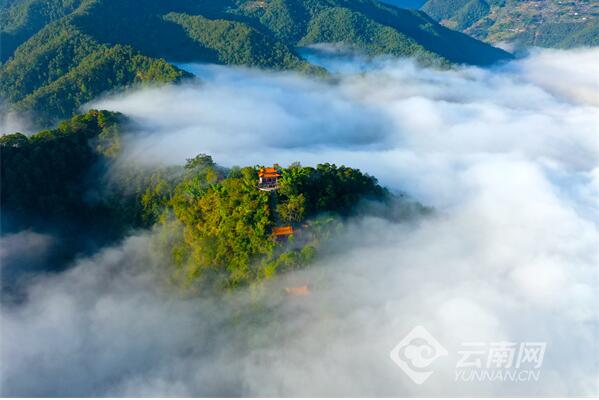 這個季節是景東觀賞云海日出的最佳時節。清晨時分,當大地還沉浸在安靜甜美的夢鄉之中時,御筆山下早已“暗潮涌動”,波起云涌。御筆山上老君殿附近的山巒和樹叢之間,冷暖空氣與山脈相匯,產生煙波浩渺的云海奇觀,茫茫云霧,層層疊疊,映襯出老君殿這一古老文化建筑的巍峨,填滿溝壑和川河壩的云海更使得御筆山上的翠屏、瑞屏、錦屏、玉屏四條山峰似如4條蛟龍入海。