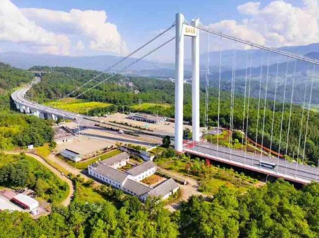 龍江大橋位于保山至騰沖高速公路上,跨越龍江中游河段,總長2471米,橋面寬33.5米,橋面距谷底280米。該大橋總投資19.55億元,歷時5年,于2016年4月建成通車,是目前亞洲山區最大跨徑鋼箱梁懸索橋、云南省第一座千米級懸索橋,也是云南保騰高速創造“歷史文化之旅、自然景觀之旅、國際通道之旅”的標志性建筑。