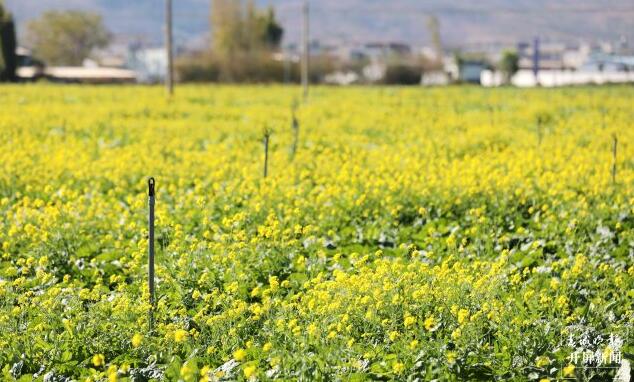 隆冬時(shí)節(jié),曲靖市陸良縣馬街鎮(zhèn)村莊旁的蔬菜基地里,成片的油菜花悄然盛開。黃燦燦的油菜花在陽光的照耀下,為寒冷的冬日增添了一抹明亮和暖意。