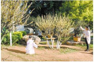 本報訊 記者劉會芳報道 1月8日,記者在昆明黑龍?zhí)豆珗@看到,梅園里暗香浮動,不同品種的梅花競相綻放,似云霞裝扮著大地,點綴著冬日。