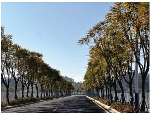 秋冬季節,無論陽光是否灑落,新通車的海晏路南段都是一派生機勃勃的景象。人行步道外側,根據道路綠化美化要求設計種植的藍花楹已落地種植,雖然在冬天,樹梢微微泛黃,但到了夏天,可以預見將成為一片藍紫色的花海。此外,搭配種植的白花三葉草等花灌木地被,讓小道景觀層次豐富,通透的視線也保障了出行安全。此次綠化美化工作,在海晏路南段1.5米寬中央綠化帶自然式布置各種喬木、灌木及地被,成片種植觀花林帶,通過喬灌木的自然組團結合,營造愜意、舒適、層次豐富的氣氛,并形成豐富多彩的綠化景觀效果。除了藍花楹之外,還采用了雞冠刺桐、天竺桂等樹種,搭配地被銀邊草等植物,還能營造出郁郁蔥蔥的森林城市景觀效果。