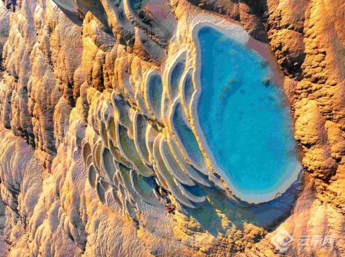 冬日的白水臺美不勝收,清澈的水面在藍(lán)天的映襯下變得更加色彩斑斕。