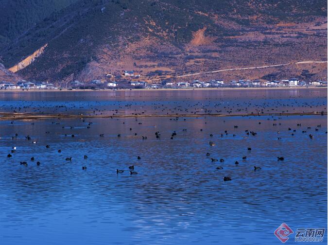 白云縹緲,候鳥飛回,雪山屹立,天光云影