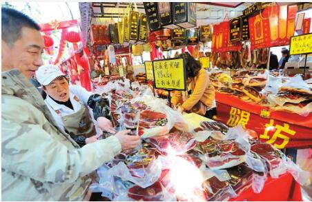 春節臨近,春城街頭年味漸濃,春節年貨街也陸續開街迎客。翠湖年貨街上,鬧新春的節日氛圍格外濃厚。迎接龍年春節的燈籠、春聯等傳統節慶飾品以及香腸、火腿等食品琳瑯滿目,吸引了眾多市民前來選購。 本報記者 楊崢 攝