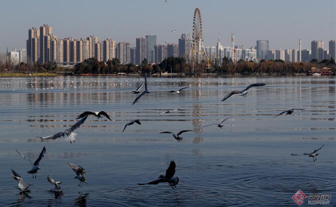 滇池綠道壩河濕地公園,草海水域海鷗飛翔,滿眼都是生機盎然。