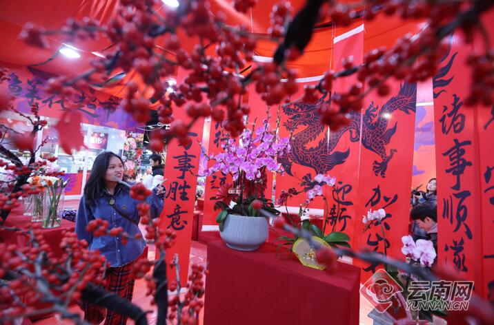 1月15日,隨著春節的臨近,昆明斗南花卉市場內熱鬧非凡。五彩繽紛、爭奇斗艷的年宵花成為市場主角,整個市場人來人往到處都是喜慶、祥和的氛圍。大花蕙蘭、蝴蝶蘭、北美冬青等多種年宵花供需兩旺。