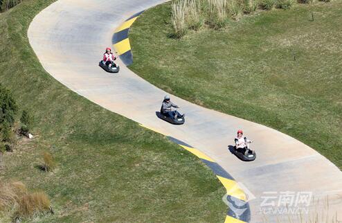 1月20日,大理路極主題公園,絡繹不絕的游客在蜿蜒曲折的賽道上感受速度與激情,乘坐天空纜車360°俯瞰蒼山洱海如畫般的風景。