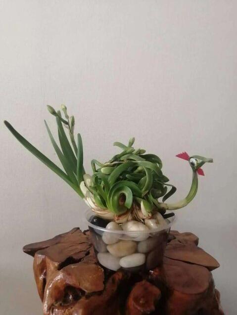 水仙花雕刻是一種常見的水仙花呈現方式,指通過雕刻來給水仙花造型,是水仙花觀賞的一種輔助工藝。以破壞花的細胞組織的發展,造成其畸形生長,同時利用植物向光生長和向上生長的特性,通過調整光源和刻傷部分使葉片朝著自己想要的方向生長,從而完成造型。
