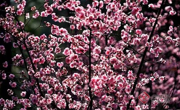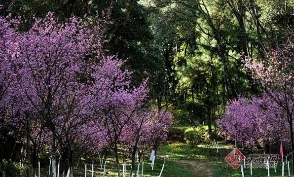 據(jù)介紹,美人梅是由重瓣宮粉型梅花與紅葉李雜交而成的梅科花卉,每逢盛花期,漫山遍野一片粉色,煞是美麗。昆明市郊野公園的美人梅主要分布種植在公園小吊橋兩側(cè)及美人谷。在這里,不僅可以欣賞到美人梅,還可以欣賞到西府海棠、杜鵑花、日本櫻花等等。
