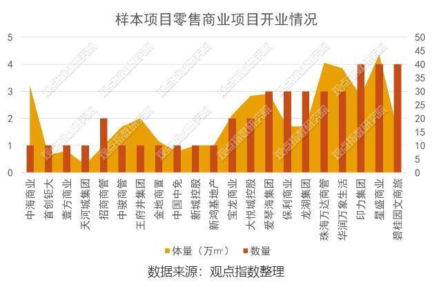 據觀點指數統計,樣本企業共有21家有新項目開出,期內也成為年內最多企業開業的節點,共計開出43個零售商業項目,體量超過410萬平方米,占期內全國新增開業項目的半壁江山。