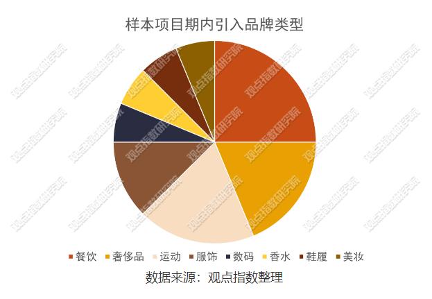 期內,觀點指數觀察下的樣本項目品牌引入數量較為穩定,相比上個報告期有輕微增長。雖然引入的品牌數量在年內并不算多,但類型較為豐富。