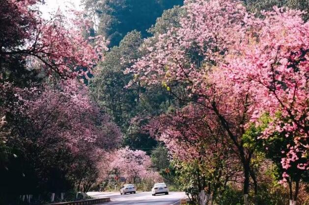 廣南縣國道一路段兩旁的櫻花盛放 通訊員 韋延梅 吳正培 攝
