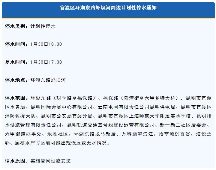 昆明市這些區域將停水