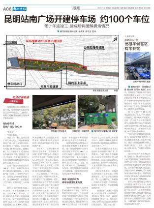2023年11月15日,都市時報報道了昆明站南廣場臨時綠色生態停車場已經開始動工,規劃停車位100個,建成后將極大緩解周邊道路交通擁堵嚴重的情況。1月5日,記者再次走訪現場了解到,停車場主體結構已完成,正在進行草地磚鋪設,工作人員表示,預計還需20天就能投入使用。
