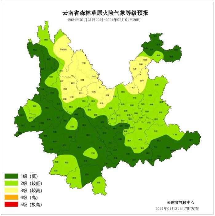 預(yù)計(jì)1月31日20時(shí)到2月1日20時(shí),迪慶州東部、麗江市、大理州北部和中部、楚雄州北部、昆明市東北部、曲靖市北部、昭通市中部和南部3級(jí),其他地區(qū)1~2級(jí)。