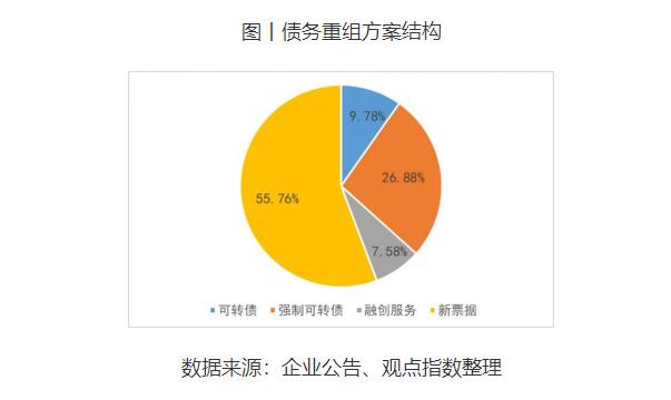 融創中國對資本市場的運用也一直比較靈活,此次進行重組的境外債務本金累計約102.37億美元,根據相關公告,存量境外債務可轉換為可轉債10億美元、強制可轉債27.5億美元、融創服務股份7.75億美元以及新票據57.04億美元,對應的境外債務占比為9.78%、26.88%、7.58%、55.76%。