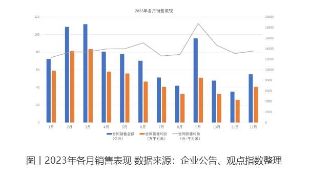 觀點指數發布的“2023年1-12月房地產企業銷售表現”研究成果顯示,2023年1-12月份,前100房企累計實現權益銷售金額40149億元,同比下降20%。行業整體銷售下滑,主要受出險房企銷售斷崖及三四線市場萎縮影響。