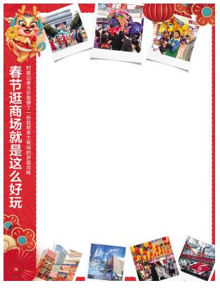 春節(jié)期間,商場將開展“吾悅中國年”主題活動(dòng):大年初一,有五福財(cái)神巡游、醒獅嘉年華等活動(dòng);2月10—16日,齊樂龍龍年味大集“限時(shí)營業(yè)”,到場的顧客都可以參與體驗(yàn)編中國結(jié)、捏面人、剪窗花、做草編等獨(dú)具特色的非遺民俗活動(dòng)。