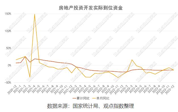 房地產開發投資方面,2023年1-12月全國房地產開發投資額11.1萬億元,同比減少9.6%,其中住宅開發投資累計完成8.4萬億元,同比減少9.3%,較1-10月跌幅擴大0.3個百分點。
