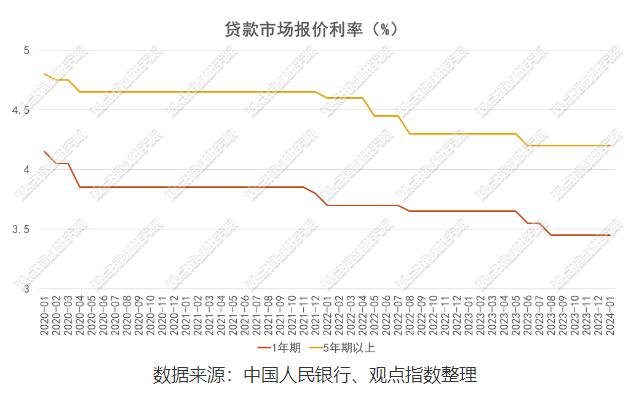 2024年1月22日公布的最新數據顯示,貸款市場報價利率保持不變,1年期LPR為3.45%,5年期以上LPR為4.2%。