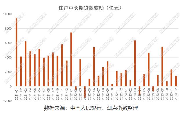 住戶中長期貸款方面,12月住戶中長期貸款凈增加1462億元,保持正增長。全年新增合計2.55萬億元。表明近期房貸調整相關政策取得一定成效。