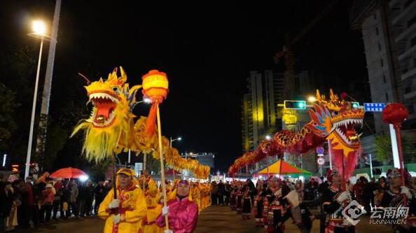 鑼鼓喧天,雙龍翻騰。日前,在賀歲迎新的舞龍表演中,2024年澄江春節年貨街熱鬧開街,栩栩如生的雙龍寓意2024年風調雨順、五谷豐登。
