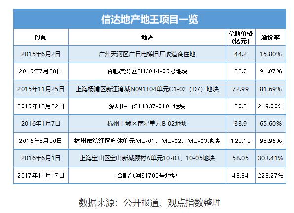 有數據顯示,在2015年至2017年短短三年時間里,信達斥資440億八奪地王,成為行業“地王制造機”。