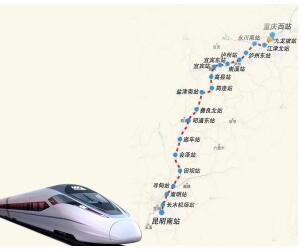 渝昆高鐵是我國“八縱八橫”高速鐵路主通道之一京昆通道的重要組成部分,線路起自重慶西站,途經(jīng)重慶市、四川省、貴州省和云南省,接入昆明南站,全長699公里,設(shè)計(jì)時(shí)速350公里,共規(guī)劃設(shè)置21座車站(預(yù)留九龍坡站)。