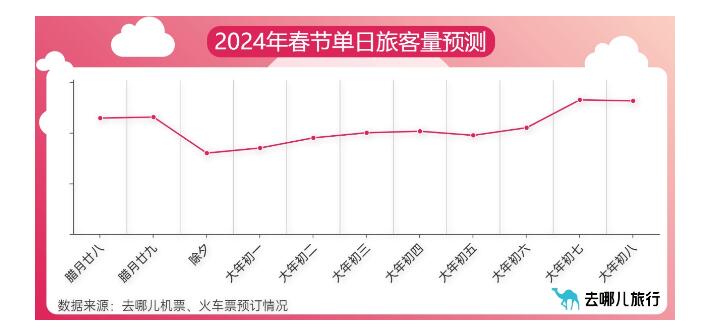 去哪兒大數(shù)據(jù)研究院研究員肖鵬分析認為:“2024年春節(jié)假期延長,將激發(fā)旅客出游熱情。從預訂情況來看,今年春節(jié)整體旅客量增加,預計創(chuàng)下歷史新高;節(jié)中不再有明顯低谷,大年初二后出游的旅客、節(jié)中臨時返鄉(xiāng)的旅客更多。無論何時出發(fā),大部分旅客都要趕在收假前返回工作地,這意味著返程票更難買。”