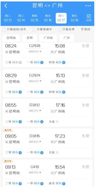 去哪兒數(shù)據(jù)顯示,春節(jié)假期的返程高峰集中在2月16日至17日,流動方向主要從西部地區(qū)、中部地區(qū)向東部大城市流動。春城晚報-開屏新聞記者通過12306客戶端查詢發(fā)現(xiàn),16日、17日、18日,昆明至北京、上海、杭州、深圳方向的高鐵車票已經(jīng)全部售罄,至廣州、成都方向零星有票。