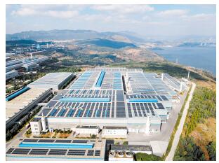 云鋁股份一方面充分利用碳排放量僅為煤電20%的水電生產綠色鋁,提高直購電中水電的使用比例,全流程運用清潔水電能源;另一方面大力推進分布式光伏發電,在云鋁陽宗海廠區,廠房、辦公樓、生活區等建筑的樓頂,到處可見整齊排列的光伏發電板。
