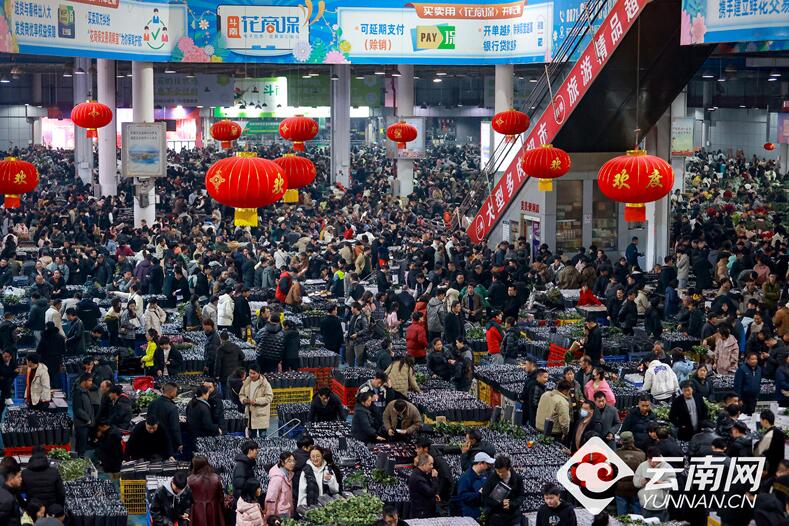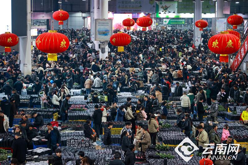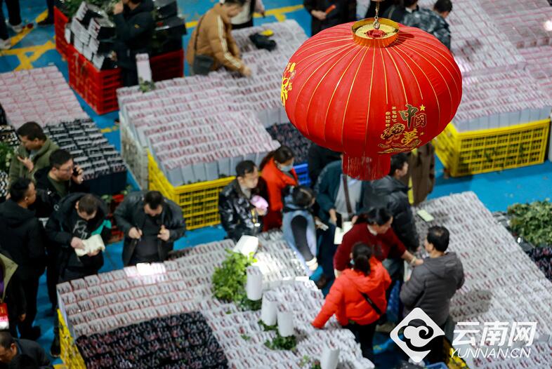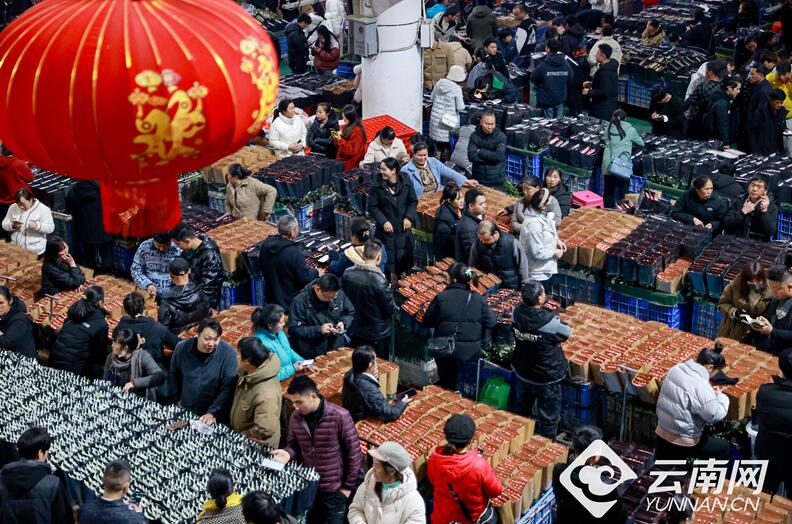 臨近春節,夜晚的斗南花市進入節前交易高峰,市場內外聚滿了進行大宗交易的采購商和購買新年鮮花的市民游客,交易現場格外熱鬧。