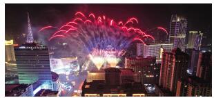 2月10日,昆明南屏街周邊燃放煙花慶祝春節(jié) CFP 圖